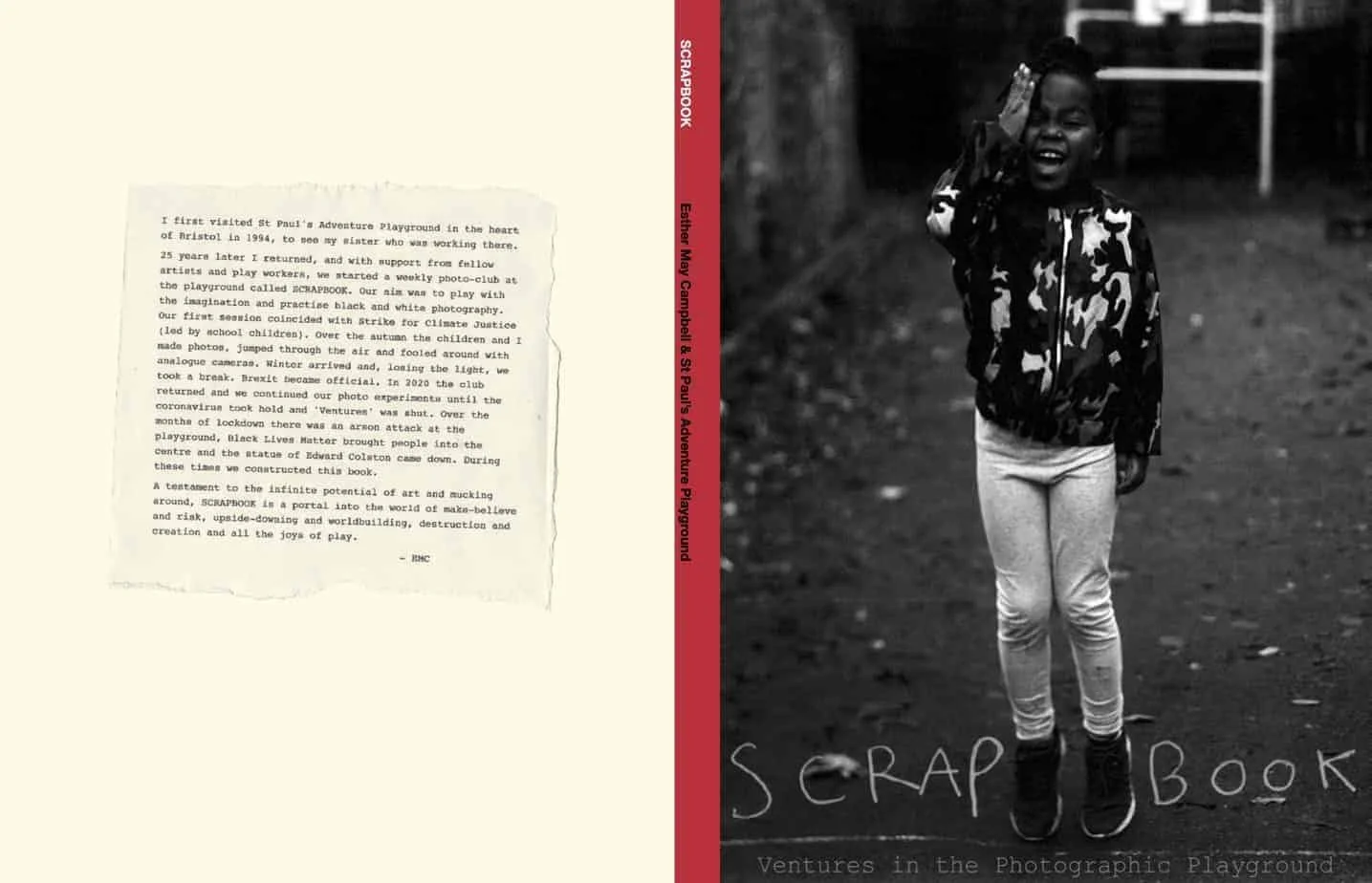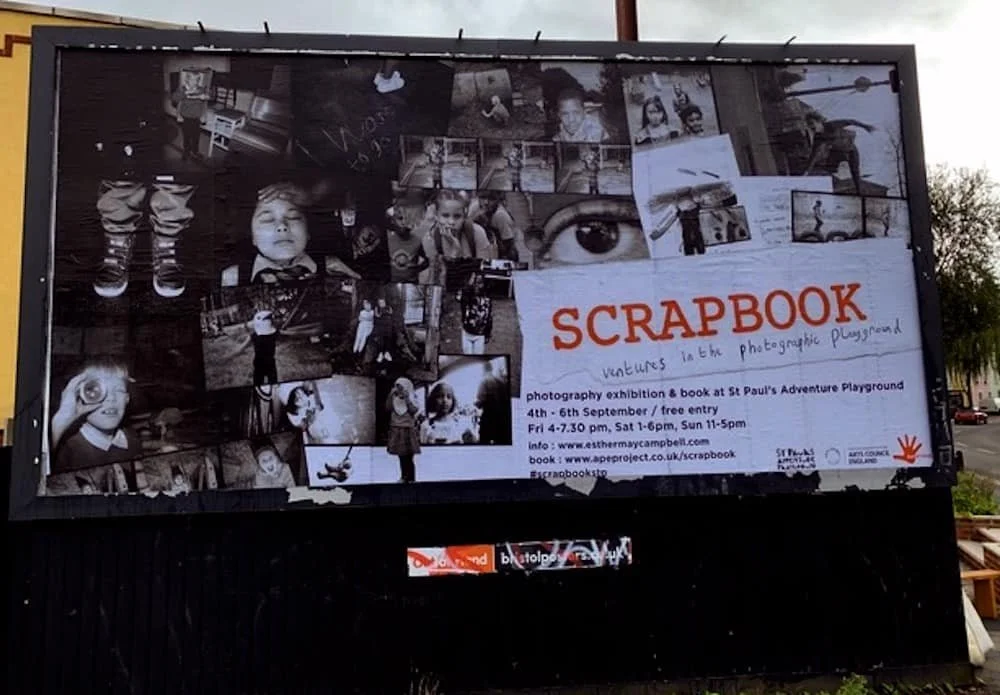 SCRAPBOOK is stunning photo-book, a citywide and onsite photographic exhibition – the result of a year’s collaboration between Esther and the children comming to a weekly photo-club at Bristol’s legendary St Paul’s Adventure Playground.